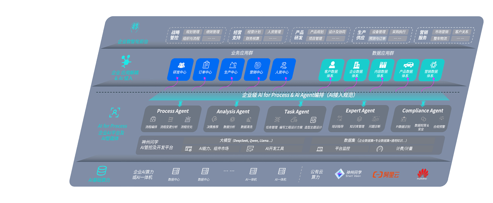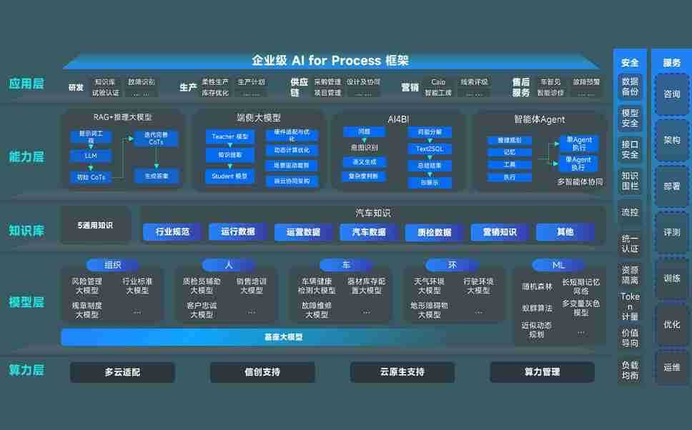 端到端的一站式AI工作空间深度融合了从企业战略规划到日常经营的全流程业务板块,,,,定向解决车企内部领域多、、、、部门多、、、链条长、、、、场景碎片化等难题,,支持车企快速构建以AI为核心的生产力写作体系,,,实现任务执行与AI能力的无缝集成与交互